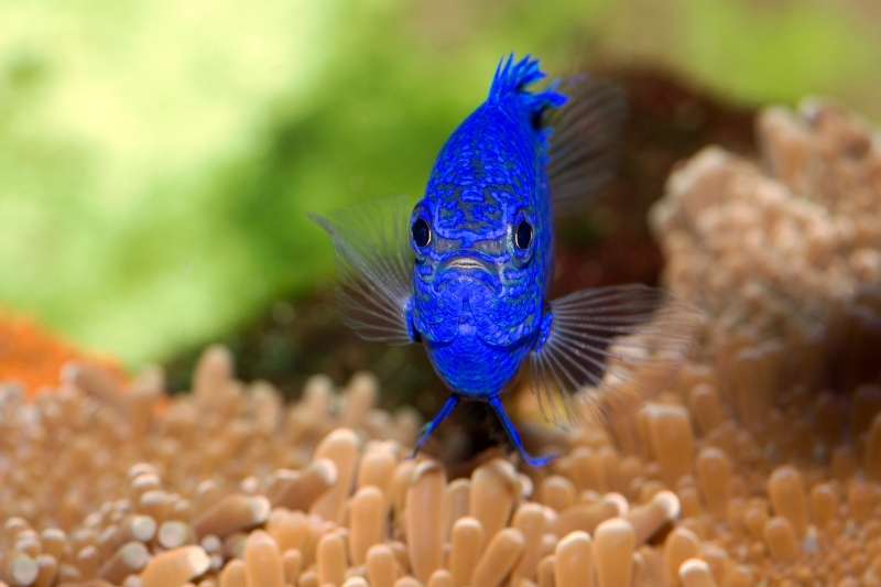 Лазурова риба-дамсел — одна з найулюбленіших типи Damselfish через їх сміливе та красиве забарвлення та особистості.
