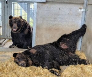 ліжка-платформи, на яких можна відпочити, завдяки тренінгам із збагачення навколишнього середовища, які ми проводили в рамках нашого проекту Partner for Animals. У 2018 році група японських ведмедів, які все життя жили на бетоні, відчула радість зручного солом’яного ліжка, коли ми сприяли їх переселенню в інший заклад. У рамках нашої підготовки аудиторів добробуту ми завжди включаємо питання про те, чи забезпечує об’єкт комфортні та відповідні місця відпочинку подалі від громадськості, такі як барлігво, нора, гніздо чи інший притулок. Це запитання підкреслює важливість таких приміщень для тварин і те, наскільки важливою для добробуту тварин є режим відпочинку та сну.