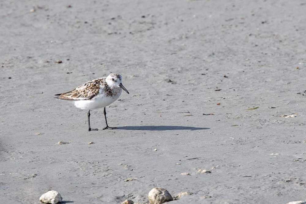 Ми продовжували спускатися дощатою доріжкою, поки не досягли пляжів і доріжки на пристань. Доріжка вела нас по захищеній від припливів ділянці берега. У цих спокійних водах Сандерлінгів ледве можна було побачити серед каменів на землі. Їхні маленькі ніжки швидко рухалися, коли вони снували в пошуках їжі.
